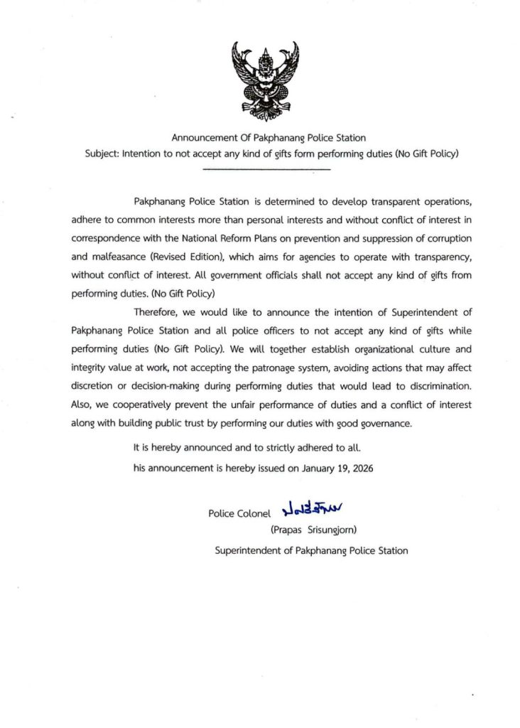 วันที่ 23 ตุลาคม 2568 เวลา 08.00 น. สภ.ปากพนัง โดย พ.ต.อ.นัษฐวุฒิ ทองทิพย์ รอง ผบก. ภ.จว.นครศ