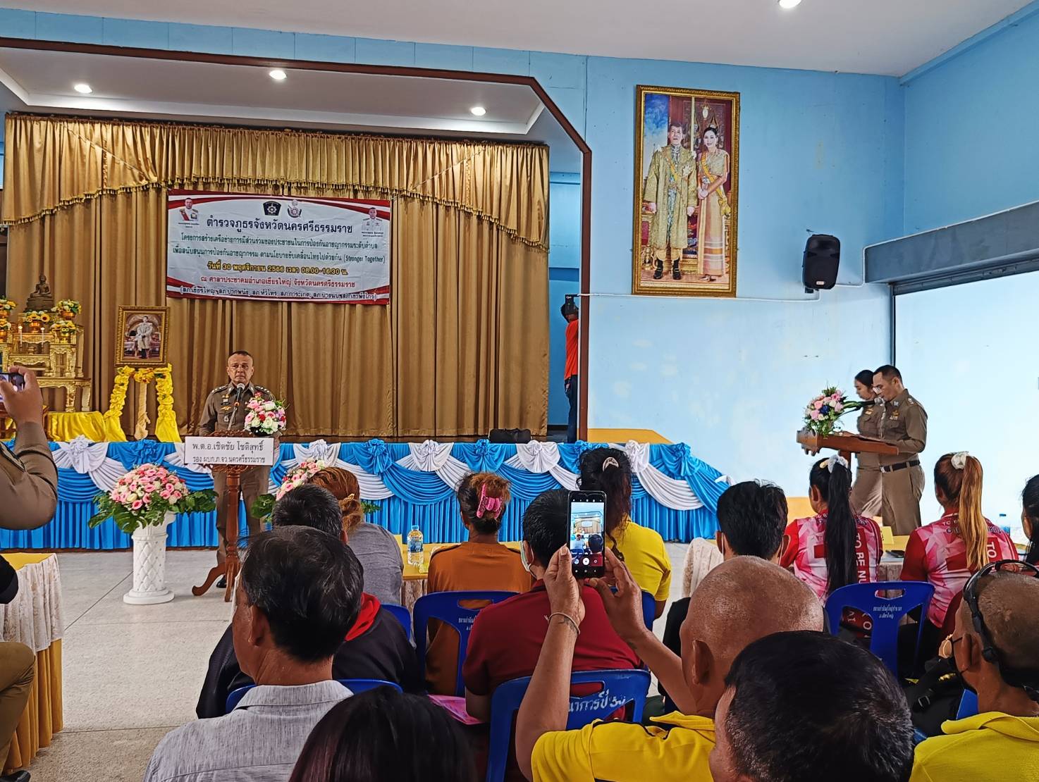 เมื่อวันที่ 30 พฤศจิกายน 2566 สภ.ปากพนัง นำโดย พ.ต.อ.สิชา พูลวงษ์ ผกก.สภ.ปากพนัง พ.ต.ท.สุนันท์ นาคนิคาม รอง ป. สภ.ปากพนัง ชุดปฏิบัติการชุมชนสัมพันธ์ (ชมส.) สภ.ปากพนัง พร้อมด้วยเครือข่ายภาคประชาชนของ สภ.ปากพนัง เข้าร่วมประชุม โครงการสร้างเครือข่ายการมีส่วนร่วมของประชาชนในการป้องกันอาชญากรรมระดับตำบล เพื่อสนับสนุนการป้องกัน อาชญากรรม ตามนโยบายขับเคลื่อนไทยไปด้วยกัน (Stronger together )ณ ศาลาประชาคมอำเภอเชียญใหญ่ จังหวัดนครศรีธรรมราช
