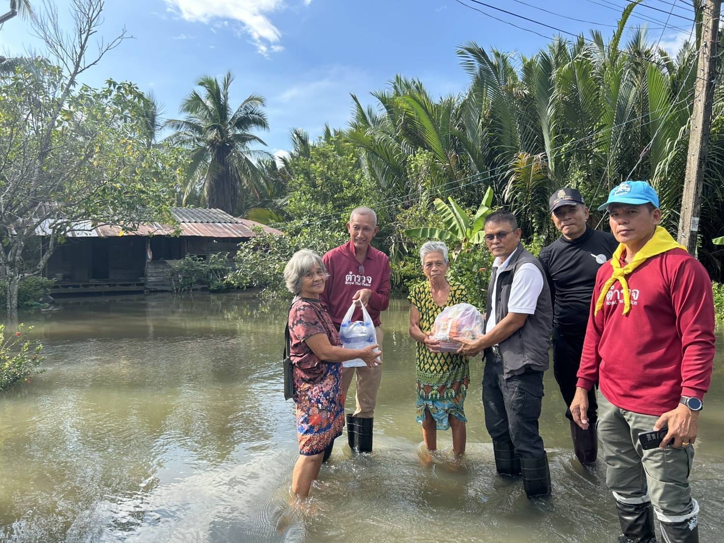 วันที่ 18 ธันวาคม 2567 เวลา 13.30 น. พ.ต.อ.สิชา พูลวงษ์ ผกก.สภ.ปากพนัง พ.ต.ต.ณภัทร มูสิกะ สวป.(ชส.)สภ.ปากพนัง พร้อมด้วยข้าราชการตำรวจ ชุด ชมส.สภ.ปากพนัง และ ชุดจิตอาสาภัยพิบัติ สภ.ปากพนัง ออกตรวจเยี่ยมและช่วยเหลือประชาชนพื้นที่น้ำท่วมขัง มอบเครื่องอุปโภค บริโภค แก่ผู้ได้รับผลกระทบจากอุทกภัย ในพื้นที่ หมู่ 15, 10, 9 และ 8 ต.คลองน้อย อ.ปากพนัง จ.นครศรีธรรมราช พบปะผู้ใหญ่บ้าน ผู้ช่วยผู้ใหญ่บ้าน สอบถามปัญหาความเดือดร้อนของประชาชน ด้านต่าง ๆ ทราบว่าในพื้นที่ยังมีน้ำท่วมสูงมาก ครอบคลุมพื้นที่ในวงกว้าง และได้ประชาสัมพันธ์โครงการนครศรีธรรมราชโมเดล (แผนปฏิบัติการป้องกันและแก้ไขปัญหายาเสพติด) ที่ให้ อ.ปากพนัง เป็นพื้นที่ต้นแบบ ซึ่งจะดำเนินการในเร็ว ๆ นี้