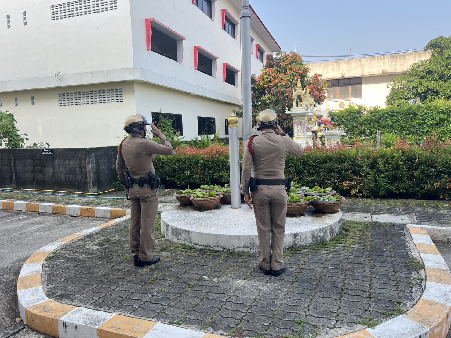สายตรวจรถยนต์, รถจักรยานยนต์, สิบเวรควบคุมผู้ต้องหา ร่วมลงแถวเข้าแถวเคารพธงชาติ