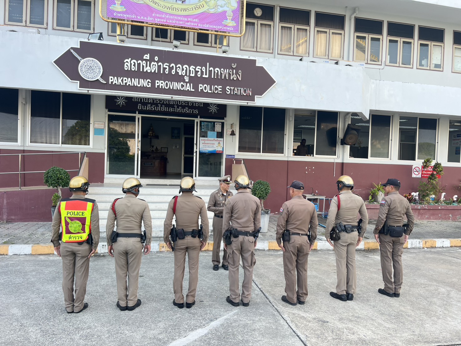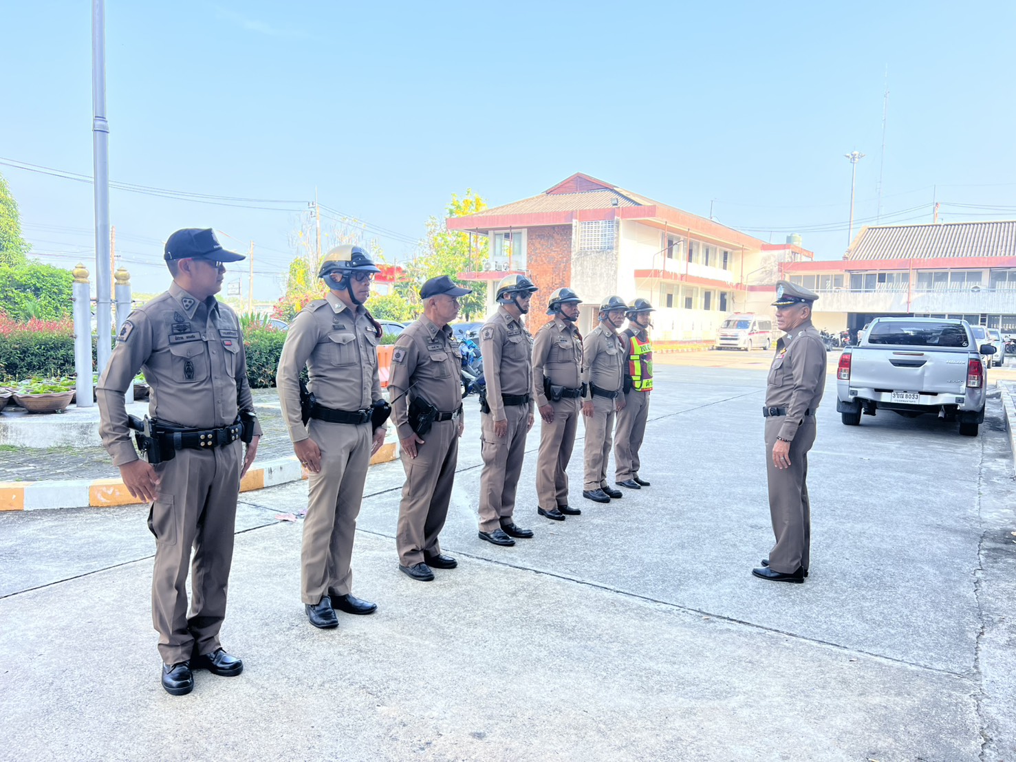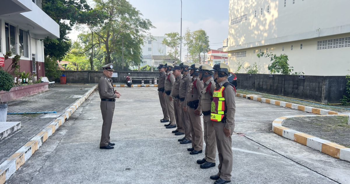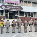 ผกก.สภ.ปากพนัง ตรวจความพร้อมตรวจอุปกรณ์ การแต่งกาย ชี้แจงภารกิจ และข้อสั่งการของผู้บังคับบัญชา ปล่อยแถวออกปฏิบัติหน้าที่