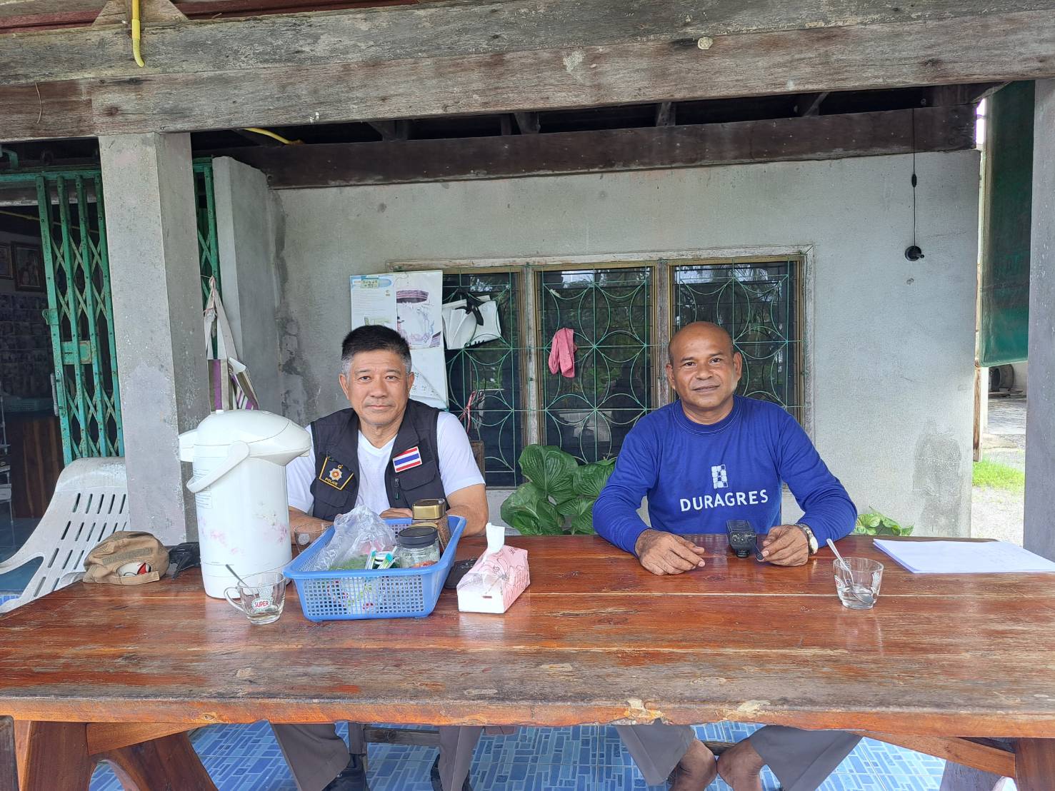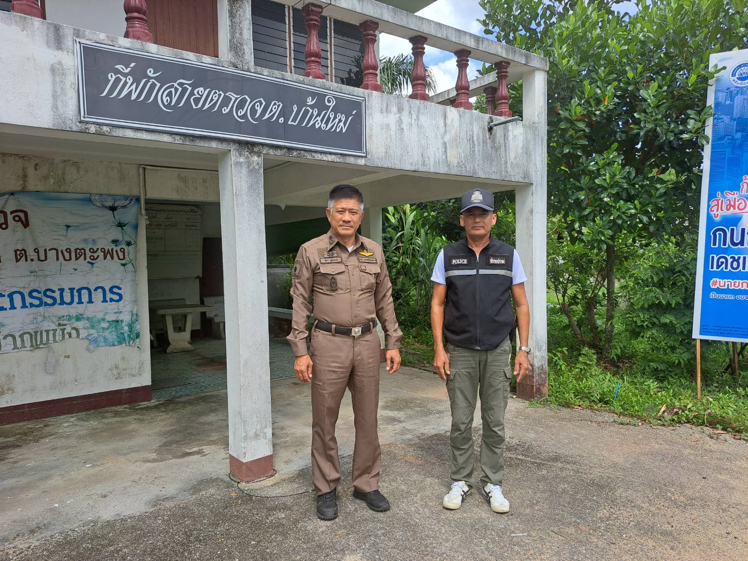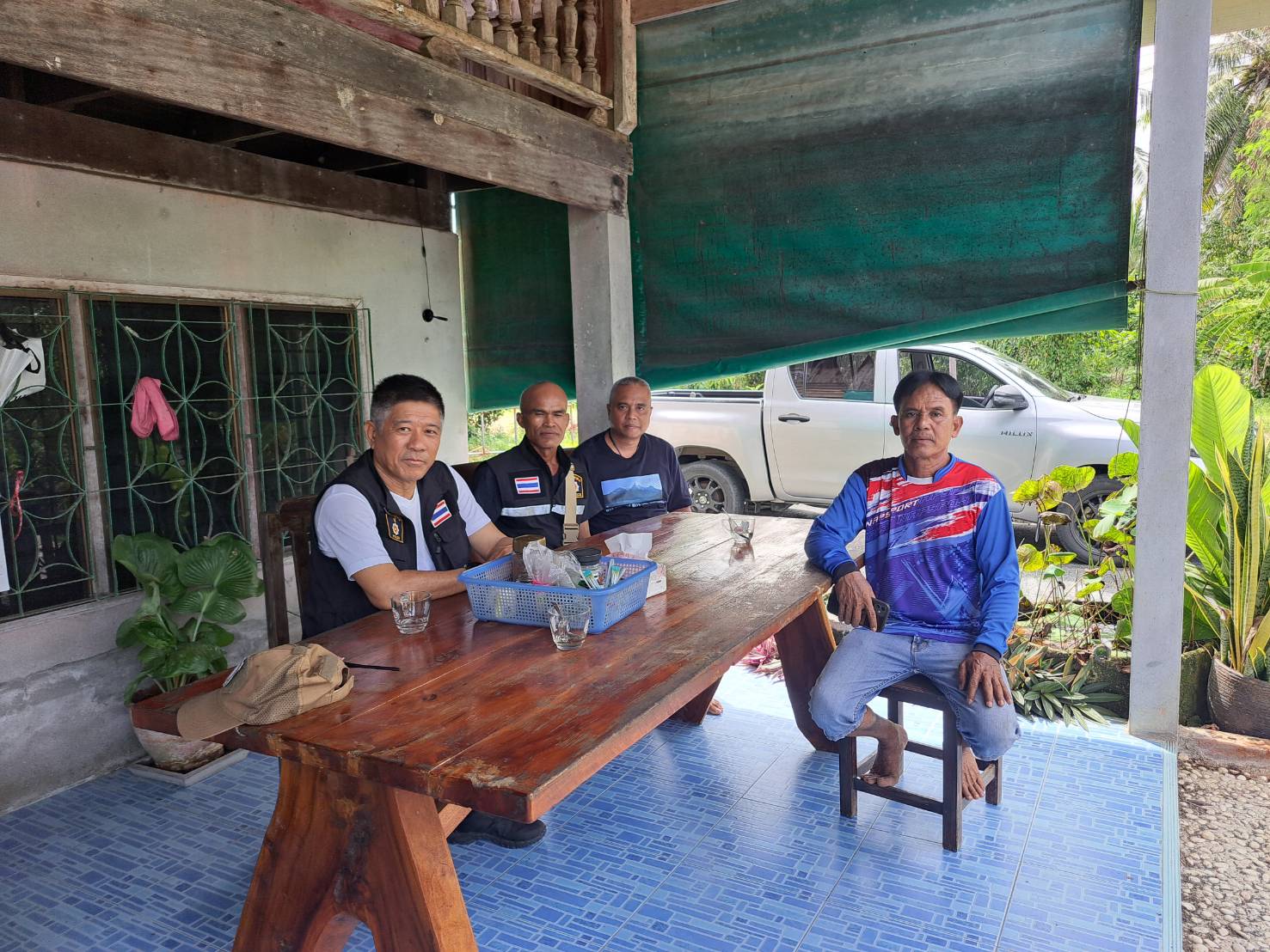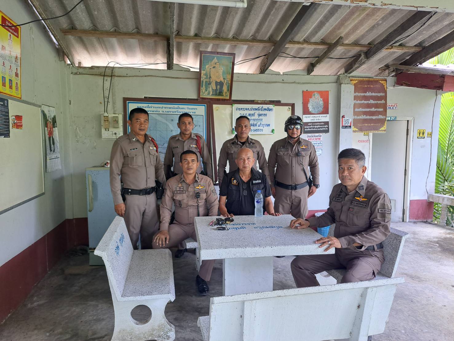 4. ที่พักสายตรวจตำบลบ้านเปี๊ยะเนิน พบ ร.ต.ท.อุสาห์ สุขชุม รอง สว.(ป.) สภ.ปากพนัง และ ด.ต.สาธิต ปานเภรี ผบ.หมู่ (ป.) สภ.ปากพนัง อยู่ปฏิบัติหน้าที่