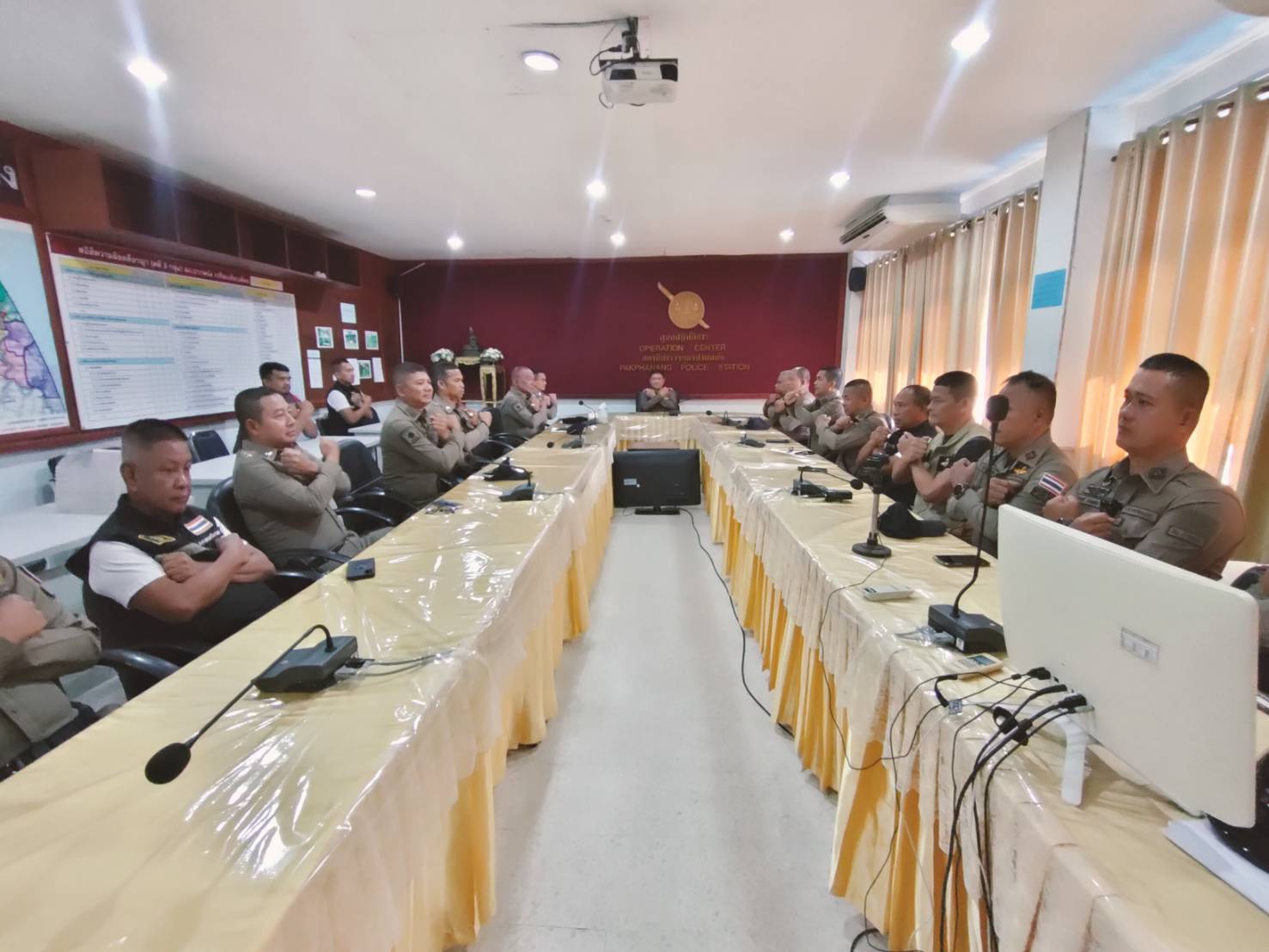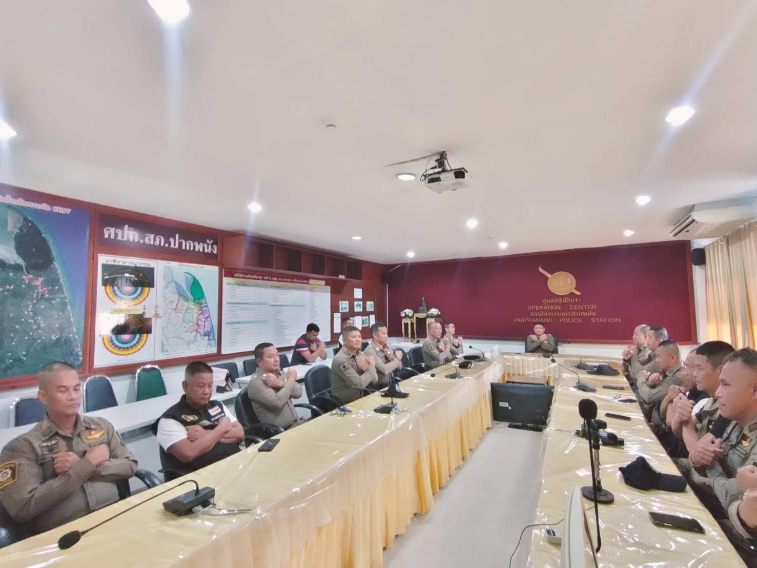 วันที่ 24 มีนาคม 2568 เวลา 08.30 น. พ.ต.อ.สิชา พูลวงษ์ ผกก.สภ.ปากพนัง พร้อมด้วย พ.ต.ท.สมนึก คงวัดใหม่ รอง ผกก.ป.สภ.ปากพนัง ประชุมข้าราชการตำรวจปฏิบัติหน้าที่สายตรวจ สายตรวจตำบล ชุดสืบสวน เพื่อสอบถามสถานการณ์ต่าง ๆ ที่เกิดขึ้นในแต่ละตำบลในพื้นที่ความรับผิดชอบของ สภ.ปากพนัง พร้อมทั้งได้วิเคราะห์ข้อมูลอาชญากรรม เพื่อหาแนวทางการป้องกันเหตุที่อาจจะเกิดขึ้นในอนาคต