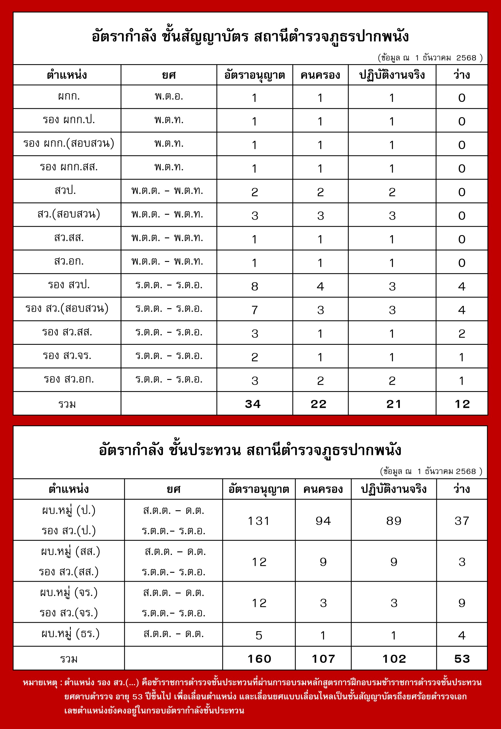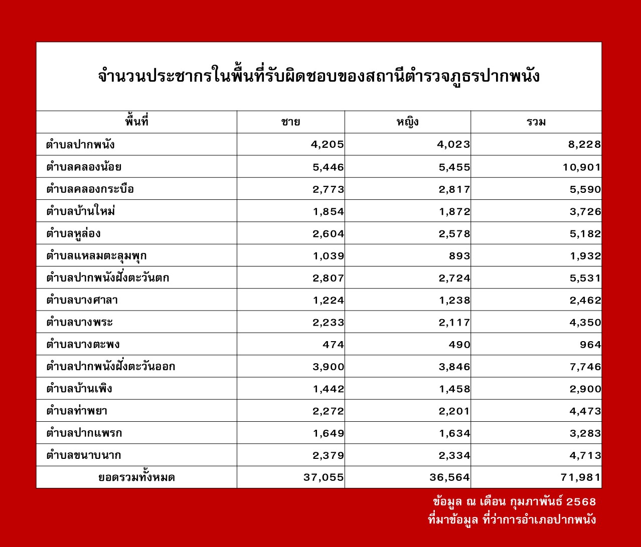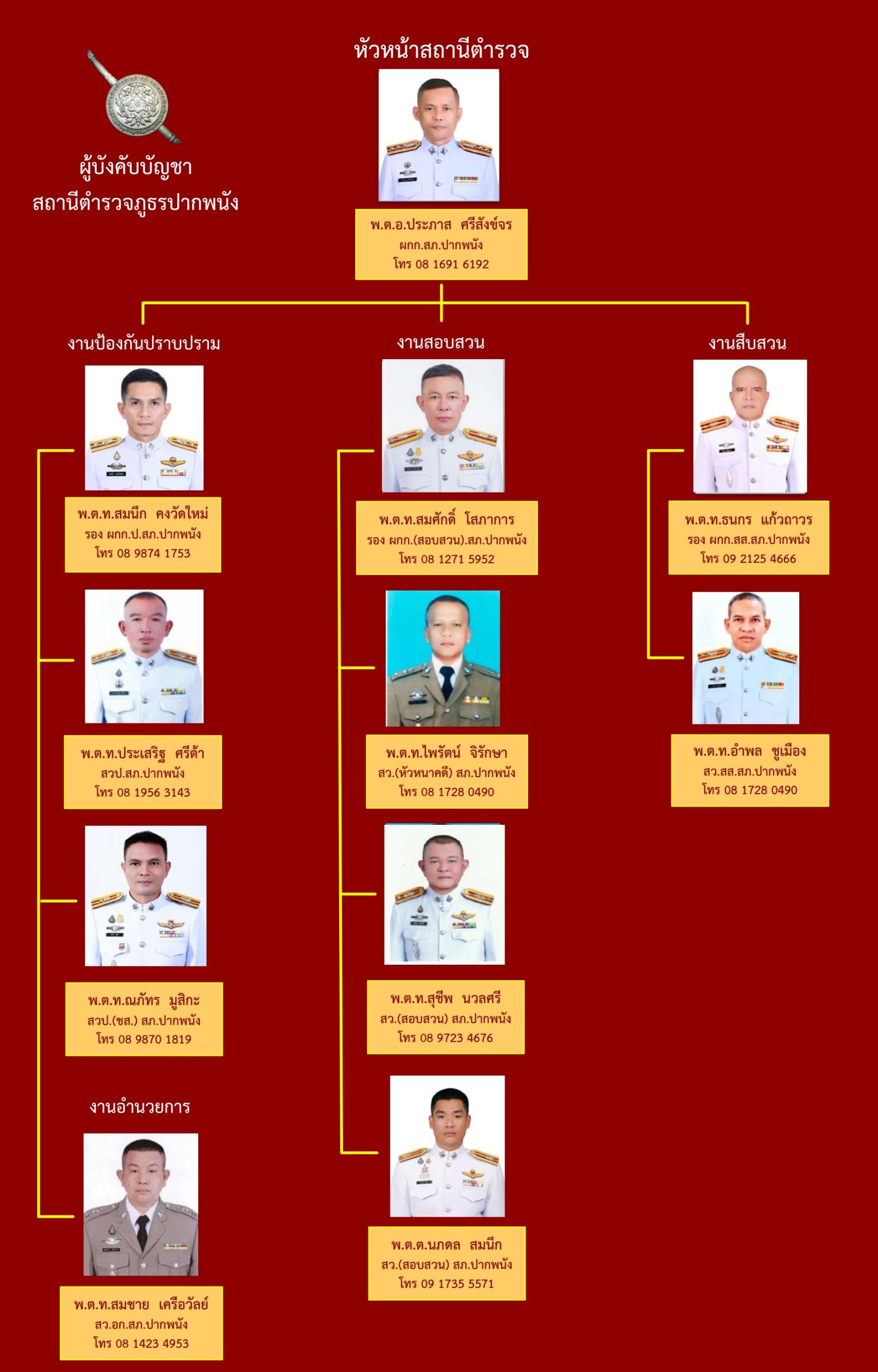 ♦ สภ.ปากพนัง มีขอบเขตความรับผิดชอบ จำนวน 15 ตำบล เนื้อที่โดยประมาณ 359.19 ตร.กม. ประกอบด้วย ต.ปากพนัง ต.คลองน้อย ต.คลองกระบือ ต.บ้านใหม่ ต.หูล่อง ต.แหลมตะลุมพุก ต.ปากพนังฝั่งตะวันตก ต.บางศาลา ต.บางพระ ต.บางตะพง ต.ปากพนังฝั่งตะวันออก ต.บ้านเพิง ต.ท่าพยา ต.ปากแพรก และ ต.ขนาบนาก